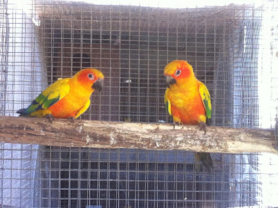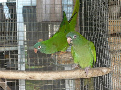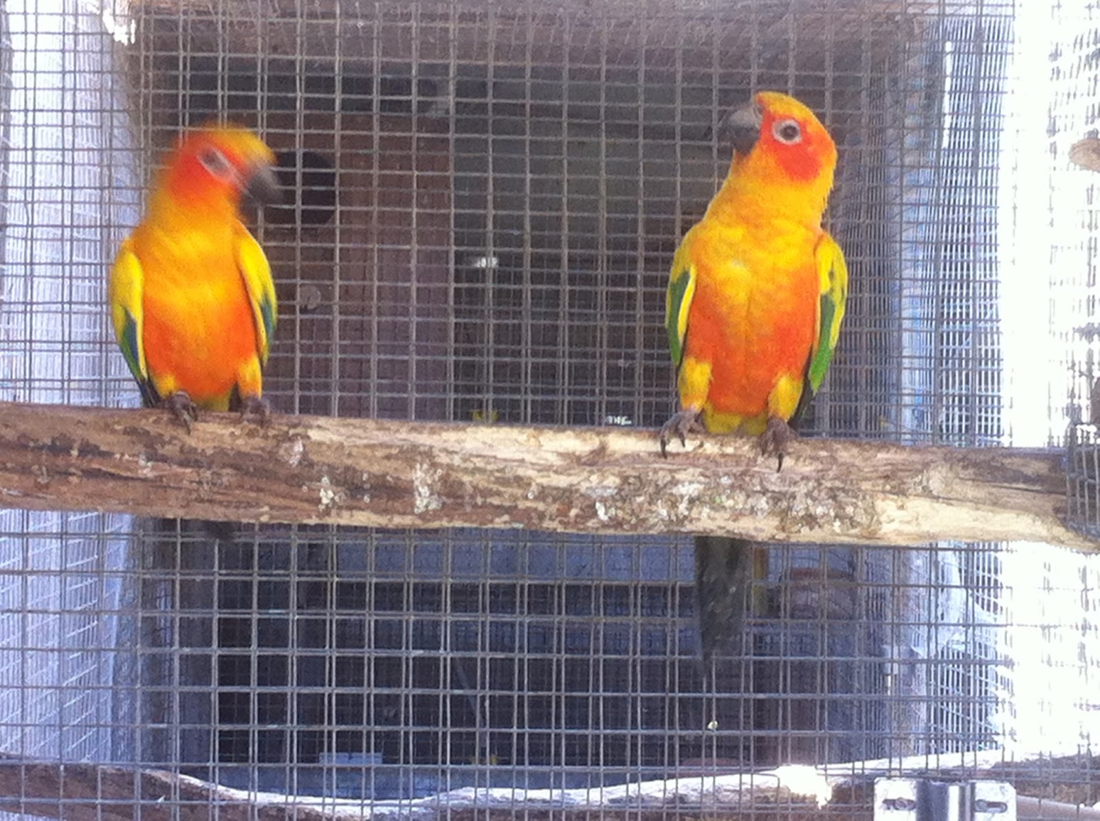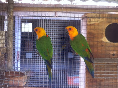 Um casal vive bem em uma gaiola com dimensões de, no mínimo, 1,50 x 0,70 x 0,70 metro. Dentro, coloque 2 poleiros e um ninho de madeira de 45 x 25 x 25 centímetros. Faça furos na base do ninho para escoar as fezes líquidas dos filhotes e evitar que eles sofram hipotermia com o acumulo do material.